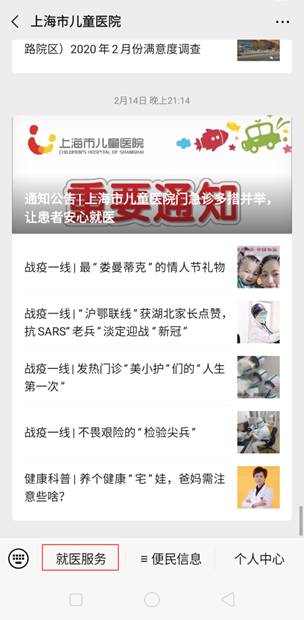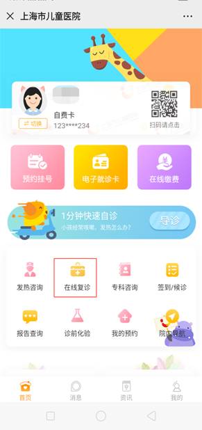 1、关注“上海市儿童医院”微信公众号或扫一扫二维码,完成实名注册;