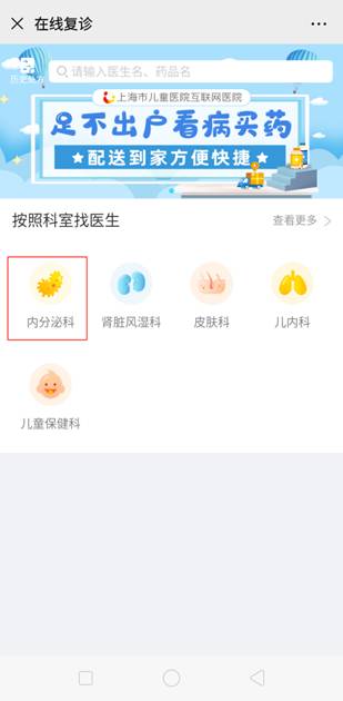 3、选择在线复诊的科室以及医生团队,发起复诊申请;