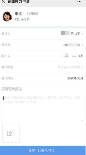 因为经常来院就诊的缘故,在在线复诊页面,小琴妈妈“轻车熟路”地提出了开药需求,并且上传了孩子近期复发的照片以及过往的就诊记录。网上接诊的皮肤科王艺蓉医师根据病情很快开出了约可再用两周的药膏。令家长惊喜的是,儿童互联网医院不仅能开处方、送药到家,还能使用医保支付!上午10点37分,足不出户的她顺利地完成了缴费,下一步就等收快递了。