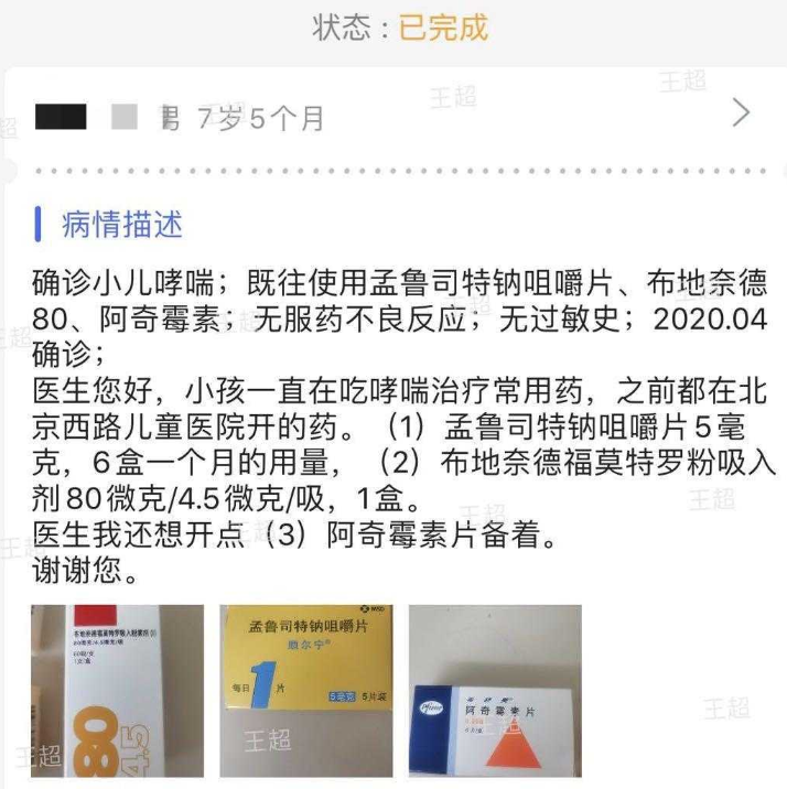 下午3点,呼吸科主治医师王超打开了手机上的上海市儿童医院互联网医院App,开始在线接诊:“7岁5个月的男孩,既往诊断过哮喘,他在3个月之内是在我们医院看过的,会看到他的病历的……”