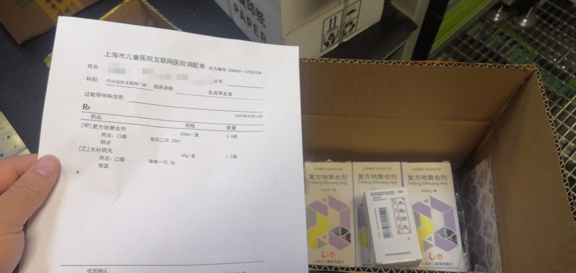 为了保证用药安全,“云药房”开出的药品到小区后都不会进快递柜,而是由专业配送人员电话联系患儿家属,当面送交本人。打开包裹后,收件人还会看到一张药品调配单,用于核对同时告知药品的具体服用方法,最后附上用药咨询的二维码,可以在线获得临床药师的专业用药指导。