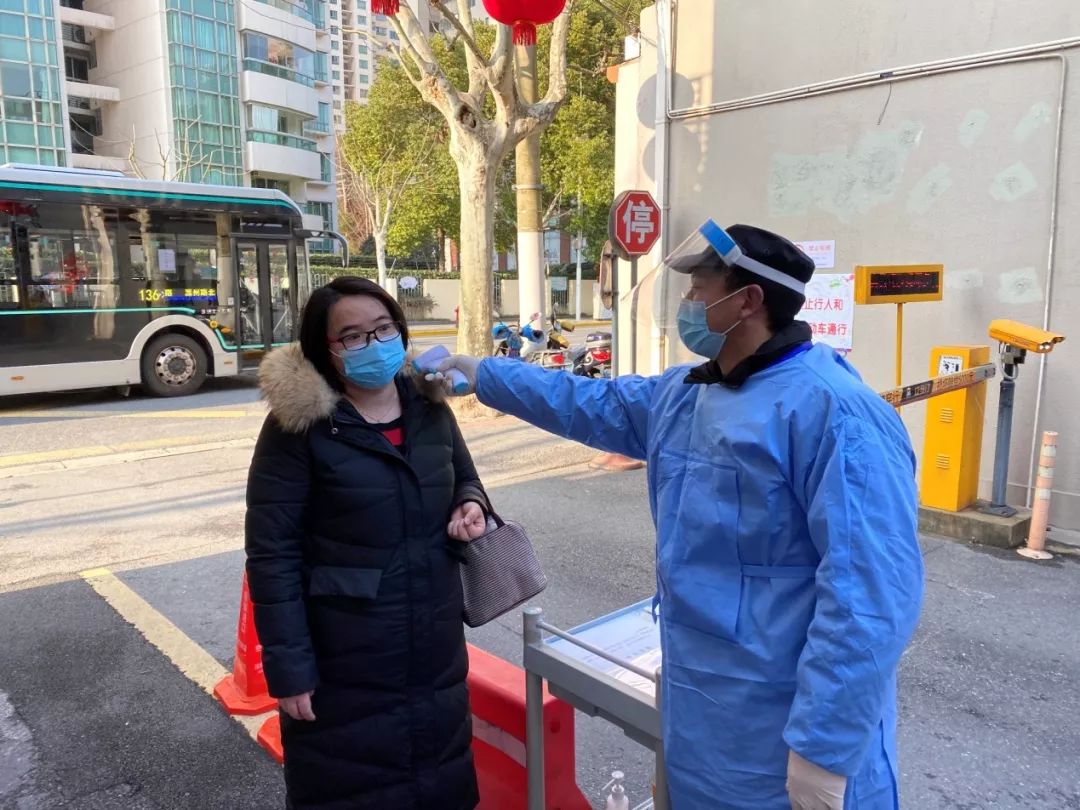 保卫部结合上级精神,拟定《保安告知书》下发安保人员“一人不漏”学习,强化人员“疫情信息保密意识、个人情况报告意识、执勤把关责任意识”。沪杰安保经理何平和石兰生是负责院内在岗安保人员的自身防护的“守护人”。他们为每位安保队员进行体温检测,严防“带病上岗”。每日负责与保卫部对接将防护物资申领到位、发放到位。除此以外还对春节请假返沪人员,严格落实特殊史情况检查、报告、登记制度,确保“零感染”人员入院上岗。