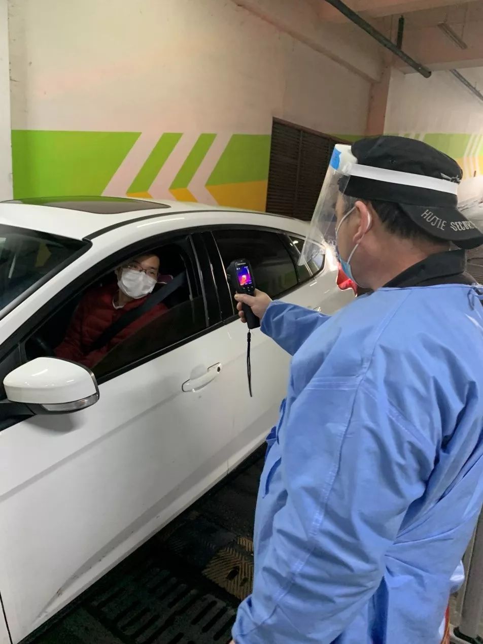 王玉林和陈进德是泸定路院区社会车辆地下车库入口的测温员,可谓是儿童医院的“门神”,他们必须站在地下车库入口处忍受着寒风微笑面对每一名开车入院的家长。由于车内温度过高会导致测温准确性受到干扰,他们必须俯下身子和司机进行解释,虽然有时会遭受到家长的抵触,但是他们还是会耐心化解疑问。