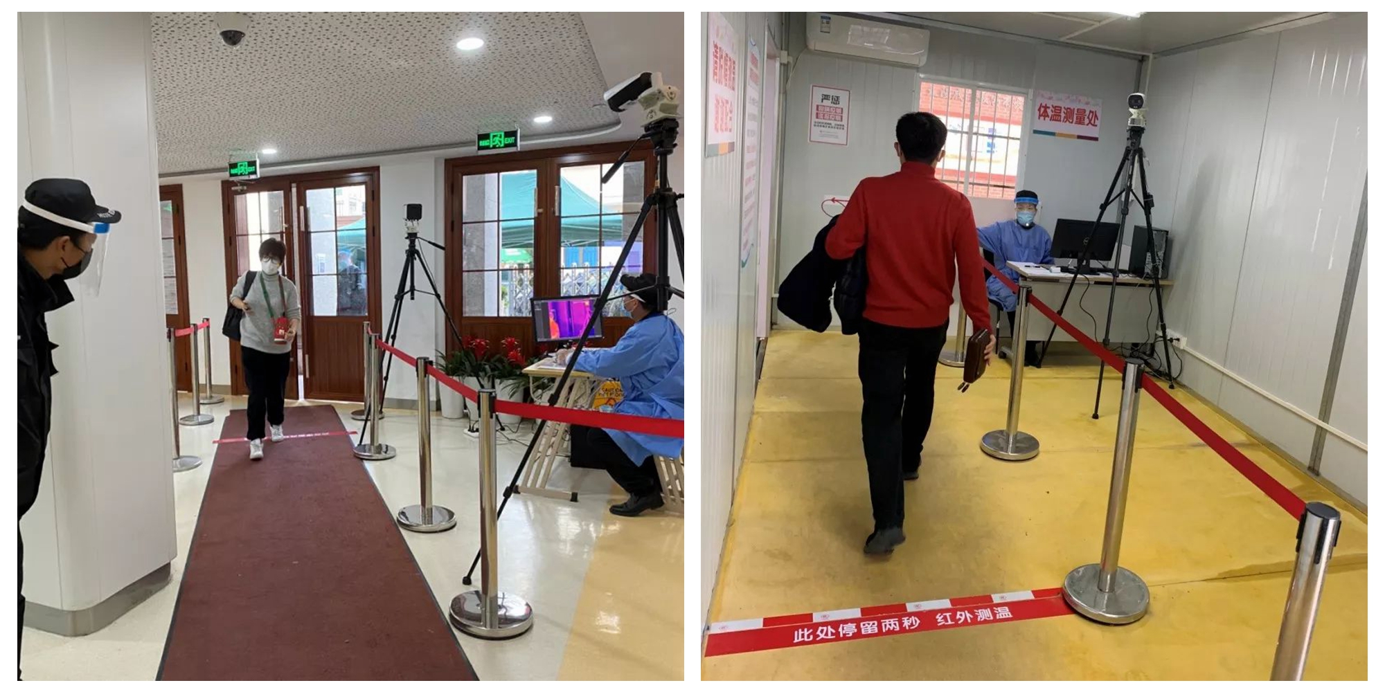 我院从大年初三就开始实行入院区人员测温工作,现有7个测温点,其中3个红外热成像人体测温通道、4个手持测温枪(仪)点位,实现两个院区入院的医院员工、就诊和外来人员测温检查“一人不漏”。
