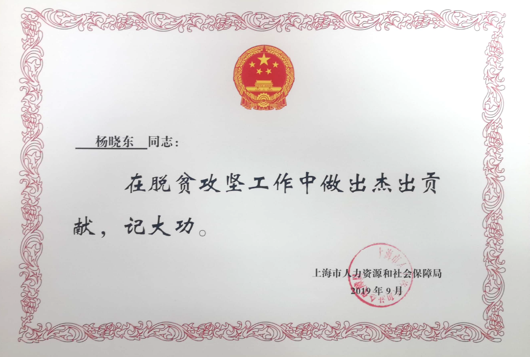 我院荣获上海市事业单位脱贫攻坚专项奖励记大功集体荣誉称号