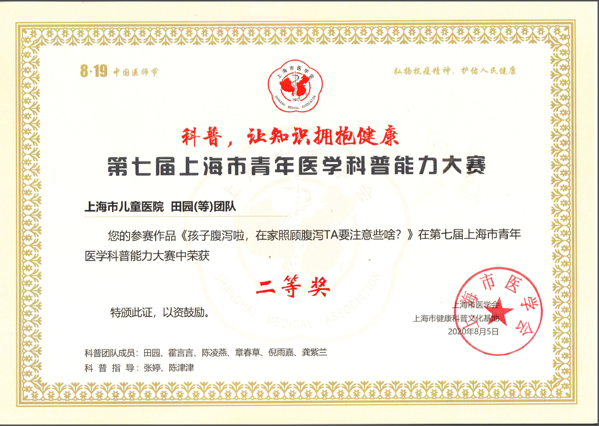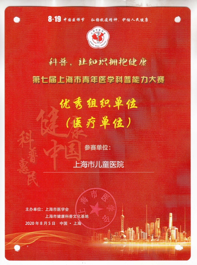 2020年8月5日,由上海市卫生健康委员会指导,上海市医学会、上海市健康科普文化基地主办,上海市医学会科普专科分会承办的 “第七届上海市青年医学科普能力大赛”,在上海虹桥郁锦香酒店举行。