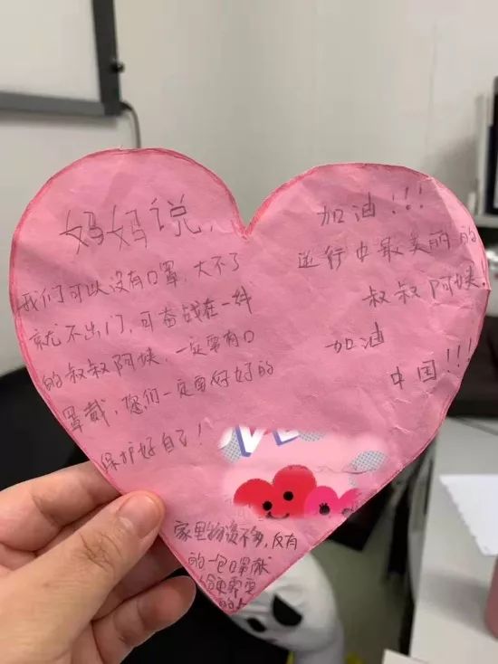 “妈妈说,我们可以没有口罩,大不了就不出门,可奋战在一线的叔叔阿姨,一定要有口罩戴,您们一定要好好保护好自己!”