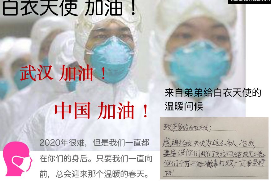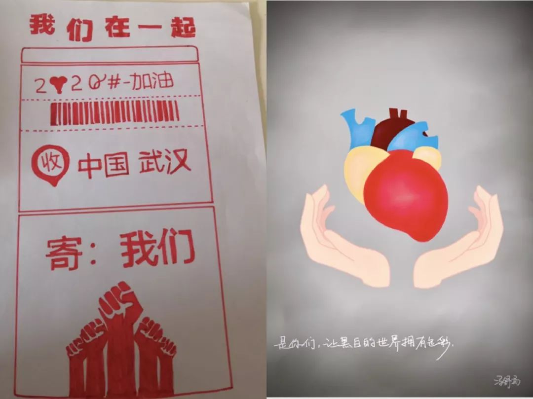 无独有偶,就在当天,我院还收到了华东康桥国际学校的同学们送来的绘画。“是你们,让黑白的世界拥有色彩”、“如果幸福太难,那么拜托你,平安!”小小“毕加索”、“达芬奇”们的一幅幅书画作品,表达对战疫一线医务人员的敬意,为抗击疫情加油。