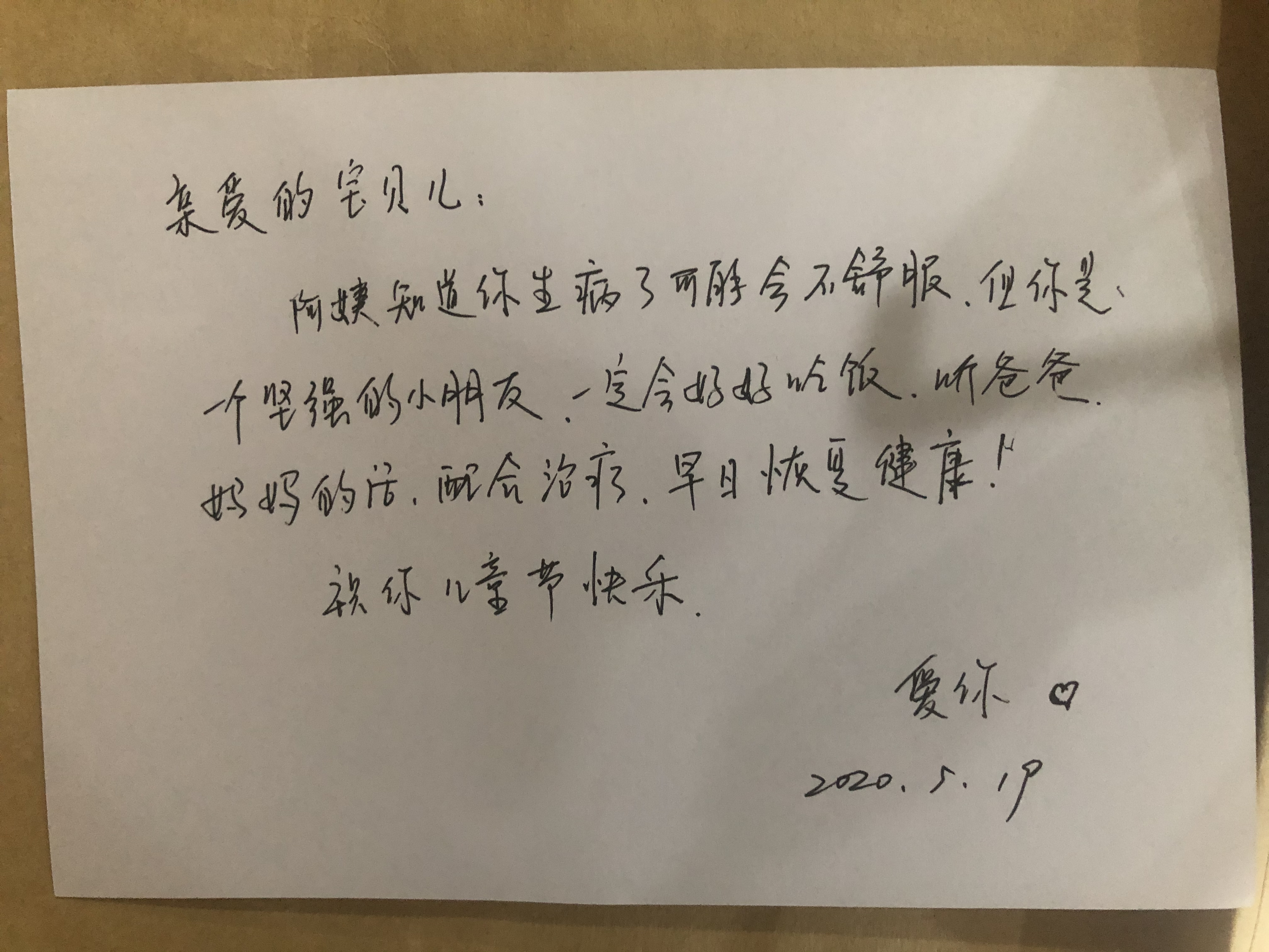 收到这份难能可贵的六一节礼物,快快一家也十分感动,写下了感谢信,表达对这对富有爱心的母女的感激之情。而快快目前还需要在移植仓内继续观察治疗2周,她将迎来人生中第一个不需要再输血的儿童节。