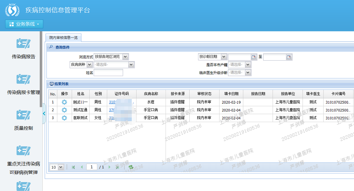 医生站系统对接普陀区卫健委和静安区卫健委的传染病直报登记系统,为上报新冠患者信息与病历信息提供技术支持。