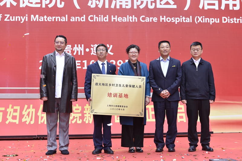 为深化沪遵合作促进儿童健康,作为第十季“千里送医到遵义”的创新实事项目,在遵义市妇幼保健院(新蒲院区)启用仪式上,上海市儿童医院党委副书记、上海市儿童健康基金会理事长黄敏向遵义市妇幼保健院党委书记张国威颁授了“遵义地区乡村卫生保健人员培训基地”的铜牌,标志着公益培训项目正式启动。遵义市委常委、市人民政府副市长尼冰、遵义市人民政府副市长姚轶、复旦大学EMBA文创协会副会长胡志伟等领导出席项目启动仪式。