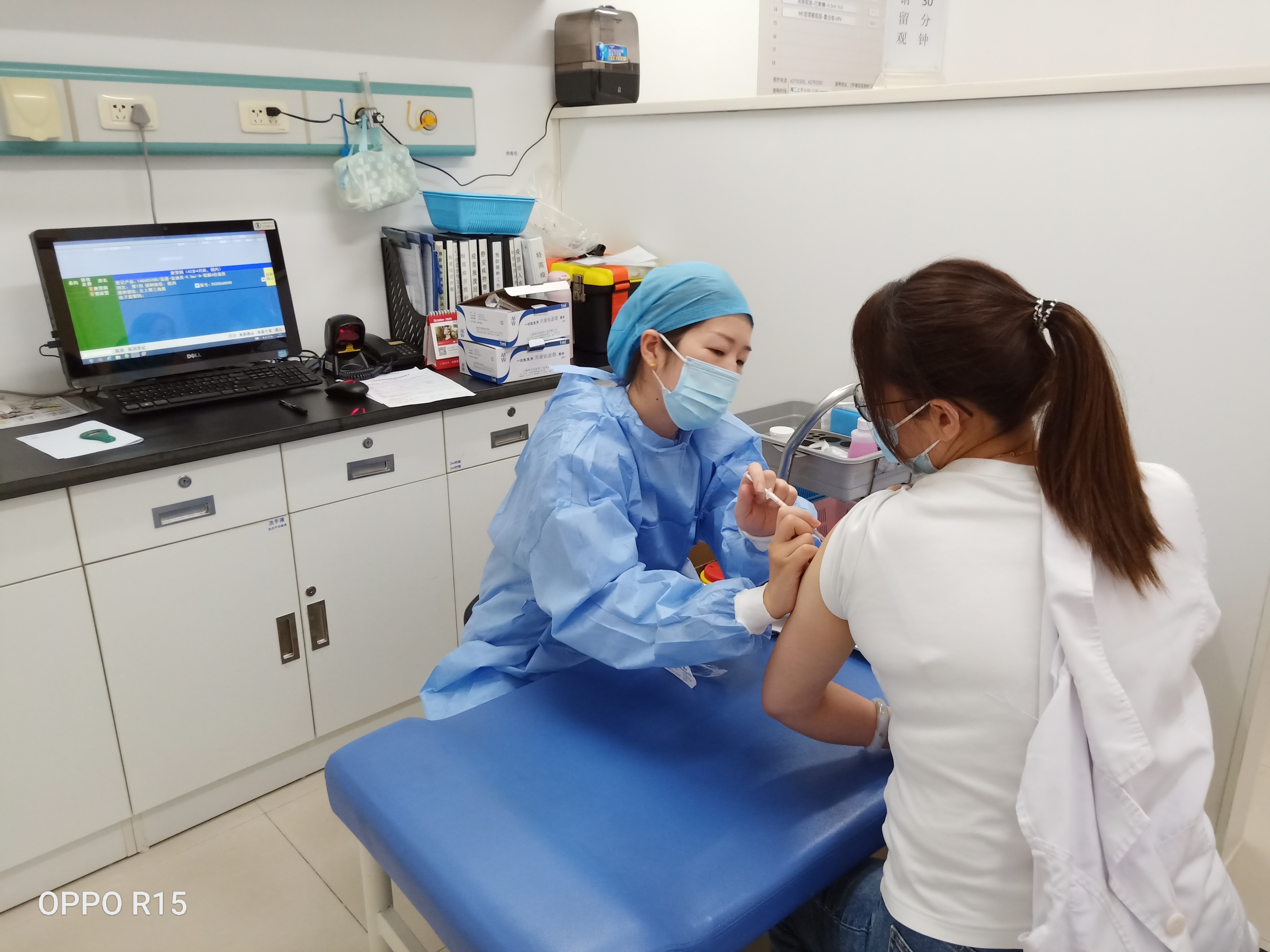医务人员职业暴露,是医务人员在从事诊疗、护理活动过程中接触有毒、有害物质或传染病病原体,导致损害健康或危及生命的一类职业暴露。在此儿童流感高发的季节,临床一线医护人员每天都会接触无数患儿,这无疑增加了感染性职业暴露的风险。2020年9月3日,中国疾病预防控制中心编制和印发了《中国流感疫苗预防接种技术指南(2020-2021)》,指南推荐医务人员为优先接种对象。本次职工疫苗接种前,感控办对全院职工进行了《流感疫苗接种意愿》问卷调查,报名接种者共491人。在接种过程中,经过积极的宣传发动和补订疫苗,实际完成接种570人。