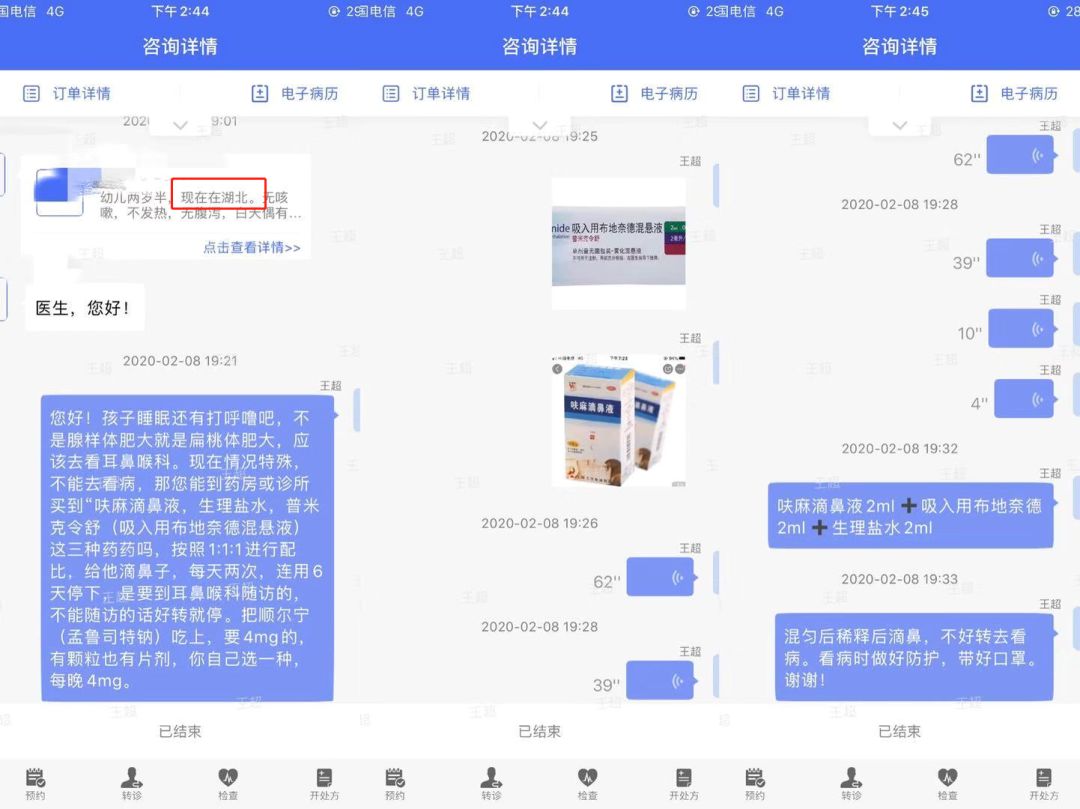大年初三,已经连续工作好几天,本打算回家的王超,毫无怨言地留下迎战疫情。查房、问诊……忙得不亦乐乎。我院开通线上问诊后,她值班时,一天要回答来自全国各地的100多位家长的各种问题,依然有条不紊、淡定如常。一天晚上7点,已是下班时间,咨询平台突然收到了一位湖北家长发来的求助信息:孩子两岁半、无发热、不咳嗽,但是晚上睡觉老是打呼,特殊时期不敢带他去医院看病,该怎么办?根据描述,王超初步判断可能是腺样体肥大或扁桃体肥大引起,她立刻开出药方,并把每种药物的照片发给家长,建议他去药房。王超还用语音补充了药物的用法用量和各种居家护理的注意事项,“沪鄂联线”整整持续了半个多小时。最终收获了这位湖北家长的好评:“王医生很细心,讲解用药用法特别仔细。身处疫区不敢带孩子去医院,线上看病真的解了燃眉之急。”