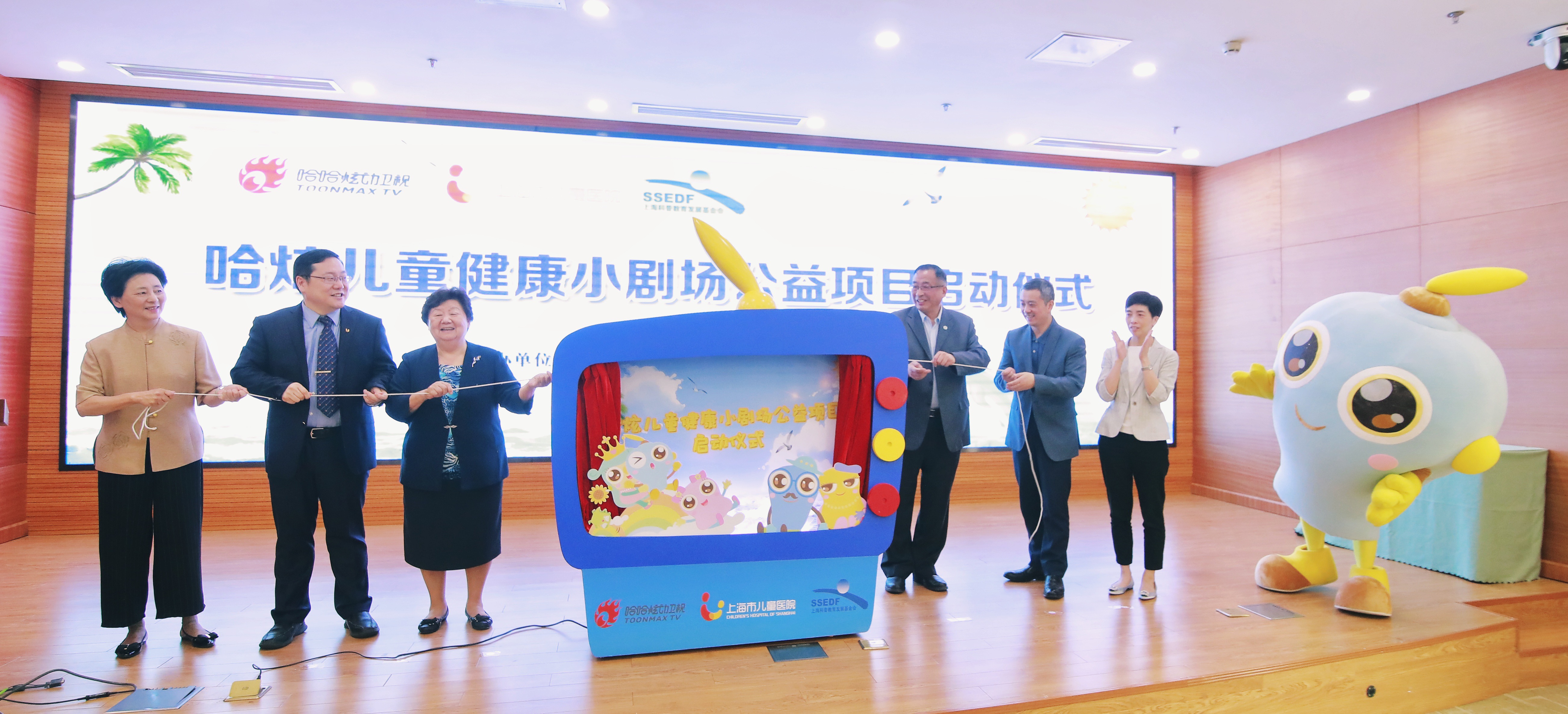 6月1日上午,在我院泸定路院区5楼报告厅,小朋友们熟悉喜爱的哈哈炫动卫视的吉祥物“哈哈”为孩子们送来了一份不同寻常“节日礼物”——由上海科普教育发展基金会支持,上海市儿童医院和上海炫动传播有限公司联合出品的“哈炫儿童健康小剧场”公益项目正式启动发布。上海科普教育发展基金会荣誉理事长左焕琛、常务副理事长施荣范、副理事长汪兰洁,上海科技馆基金管理处处长张斌盛,上海广播电视台、上海文化广播影视集团有限公司副总编辑徐浩,上海炫动传播有限公司副总经理沈罟,我院院长于广军、副院长杨晓东、总会计师张胜,及部分临床行政部门人员、各病区患儿及家长代表等出席此次活动。