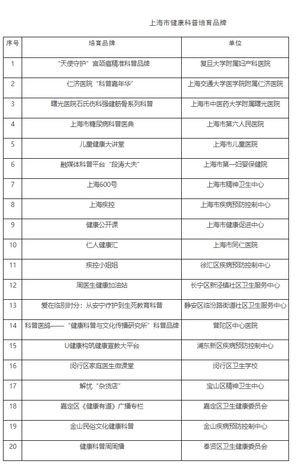 为贯彻落实健康中国战略,实施健康中国行动,提高居民健康素养水平,上海市卫生健康委员会、上海市健康促进委员会办公室于2021年上半年启动了“上海市健康科普品牌”征集、推选活动。近日,市健康促进委员会办公室与市健康促进中心遴选出了10个健康科普品牌和20个健康科普培育品牌,我院报送的“儿童健康大讲堂”入选20个健康科普培育品牌之一。