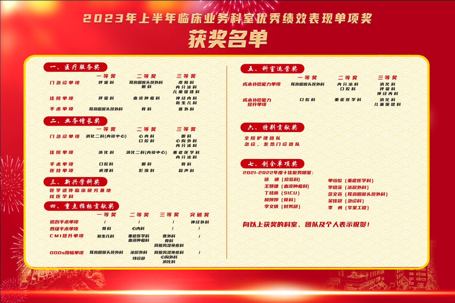 会议对上半年医院业务发展中在门急诊、住院、手术等业务量增长,病种、手术难度提升,重点关键指标改善、科室运营效益提升等单项绩效(指标)表现优秀的临床业务科室、团队及个人进行了表彰。