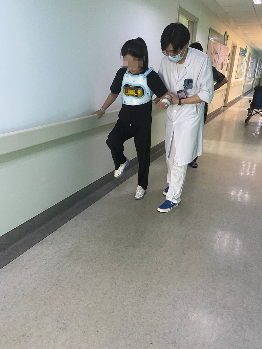 清清是一名12岁的女孩,1月前突然感觉右腿无力,爸爸妈妈以为是劳累引起的,休息一下就好了,因此并未引起足够重视。可始料未及的是,清清右腿的症状始终没有好转,而且越来越严重,甚至连走路姿势都发生了改变,最后连在家里上厕所都无法自己完成、。爸爸妈妈带清清前往当地医院进行诊疗,但未能有效控制症状;遂又辗转多家医院,但因病情复杂,均未达到理想的诊治结果。经历了多地求医无门的困境后,爸爸妈妈带清清来到神经外科詹琪佳副主任医师的门诊,此时清清只能依靠轮椅在爸爸的帮助下才能移动。
