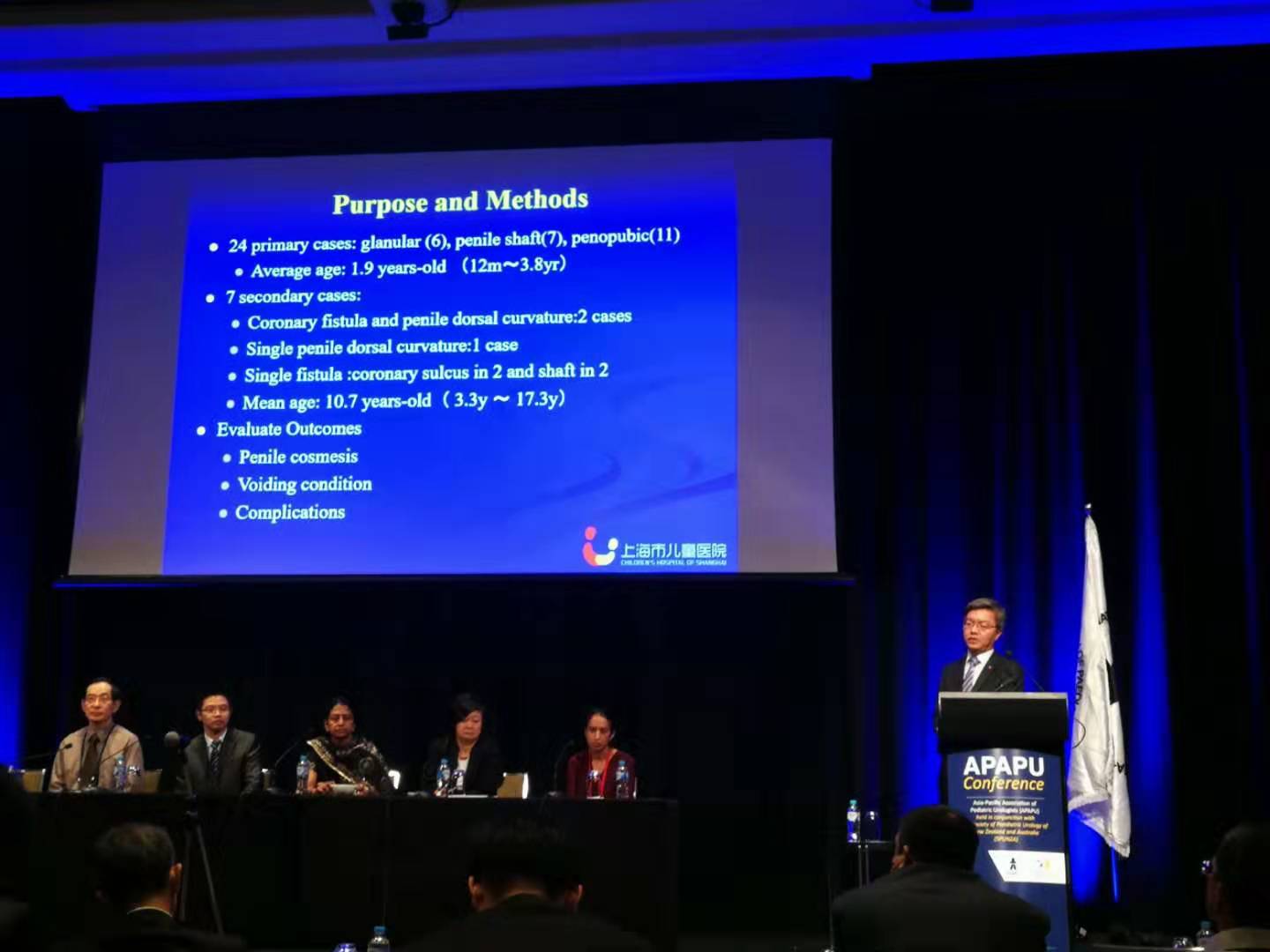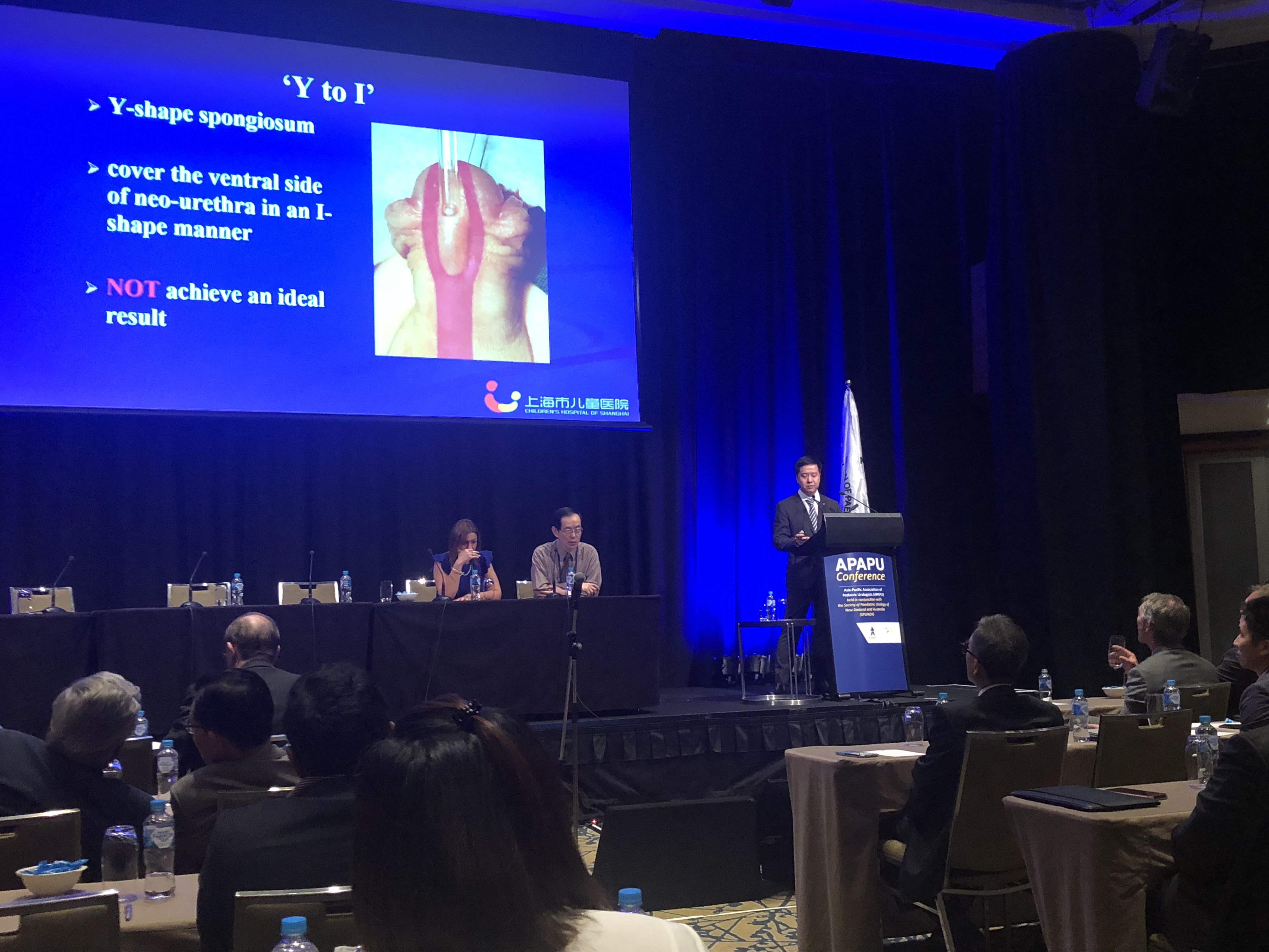 陈方教授作为前APAPU协会轮值主席,参与组织了本次年会,为大会圆满成功打下了坚实的基础。尿道下裂作为我科研究重点,是此次汇报的主要内容,向大家展示了尿道下裂治疗的中国经验,引起了参会者的广泛关注。吕逸清和黄轶晨医师分别汇报了尿道下裂分叉海绵体的临床应用和组织学研究成果,与英国Great Ormond Street Hospital的Peter Cuckow教授及澳大利亚Graham Smith展开了激烈讨论;黄轶晨医师汇报的我院与上海市第六人民医院合作开展的青春期后尿道下裂治疗策略,吸引了参会小儿专科医生的注意,特别是获得了著名学者Phillip Ransley教授的点评和建议;科室PI陈仲中博士汇报我科尿道下裂基因组学研究成果,加强了尿道下裂研究的深度。另外,黄轶晨医师、陈艳医师及周立军医师还汇报了我科尿道上裂、膀胱外翻及机器人手术方面的研究成果。
