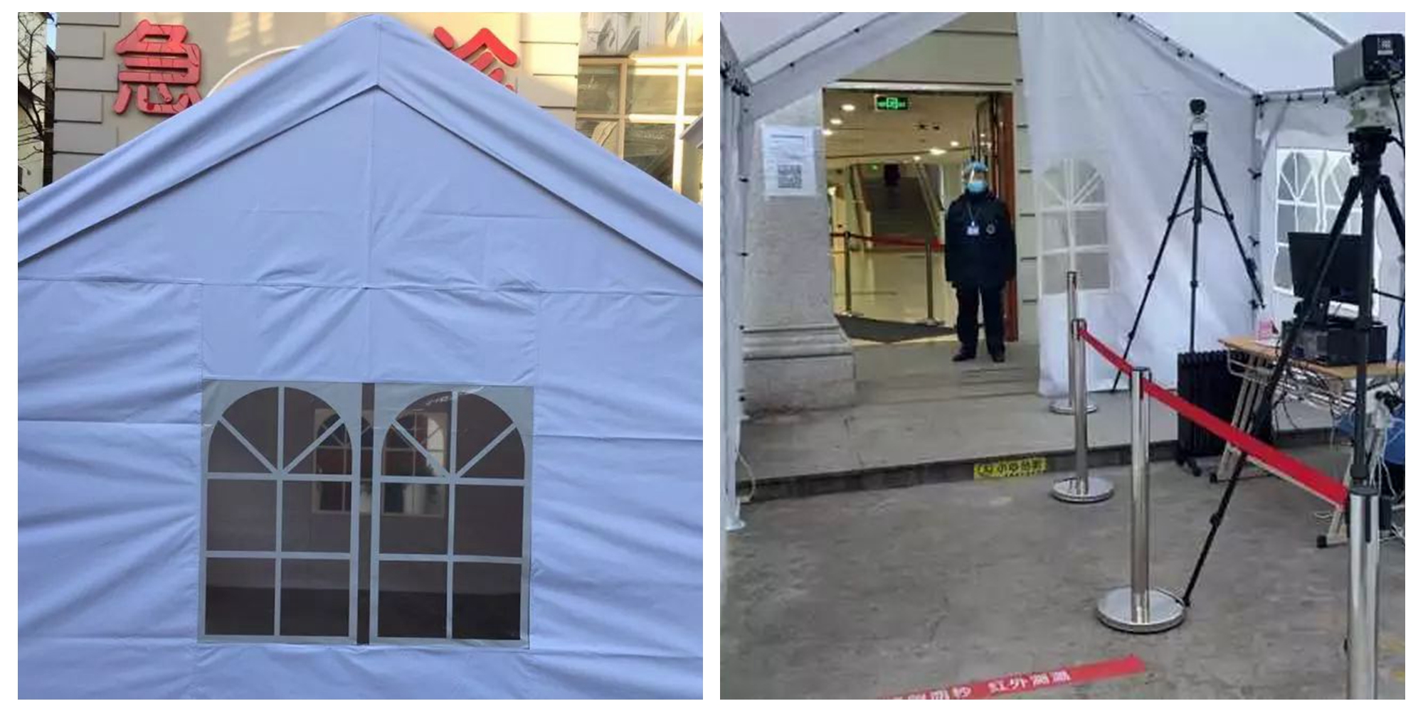 根据院感要求,为了让就诊患者前期进行发热筛查和流行病学史调查有足够空间,两院区打造了临时发热筛查区。北京西路院区先是因地制宜搭建简易帐篷作为临时筛查区,随后又预定了全封闭式的帐篷。按照原定计划,这顶帐篷将于16日下午4点到货,但却迟迟没有消息。陈蕾与供应商联系后才得知寒流+疫情特殊情况,快递公司当天已经不发货了。她立刻安排人员赴青浦的厂区提货,工作人员从赶赴青浦到到仓库“找货”,再到运输装运……直到次日凌晨4:30,陈蕾通宵未睡全程关注。到货后,她第一时间赶到医院,指导工作人员在上午8点开诊之前完成了帐篷的搭建。一早来就诊的病家,恐怕没人会想到这顶一夜之间凭空出现的帐篷经过了如此波折。