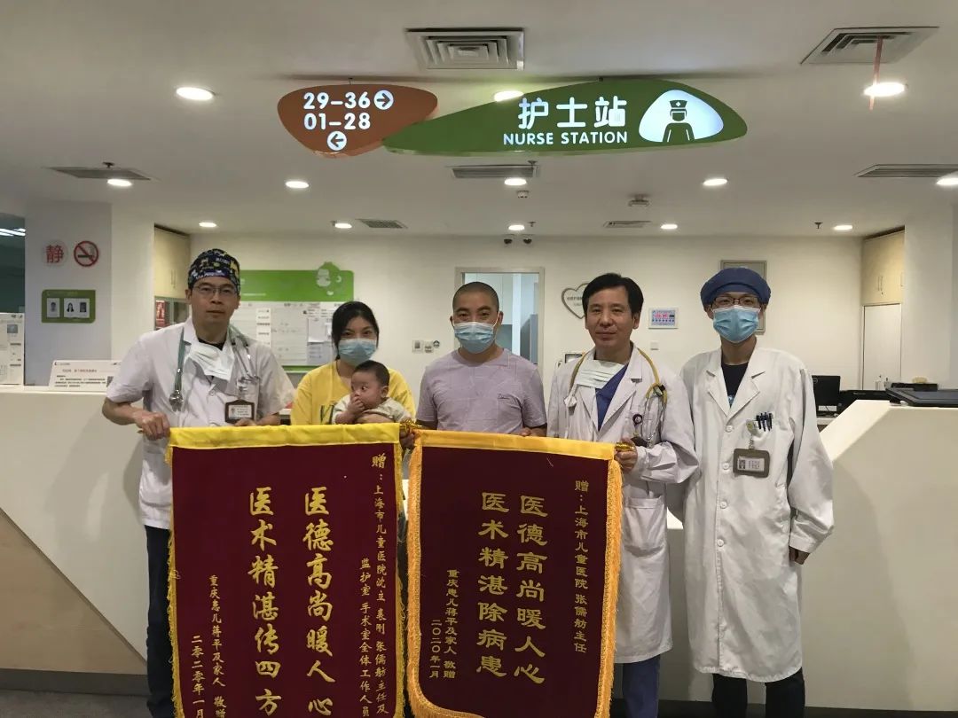 近日,术后3个月复查恢复良好的患儿小萌父母给上海儿童医院心胸外科送来锦旗表示感谢。这是小萌第二次来上海,年初他第一次来是坐着救护车长途跋涉1000多公里紧急转运至上海做手术,现在“故地重游”复诊发现小萌呼吸一点不喘,哭声响亮,体重也增加了近4公斤。