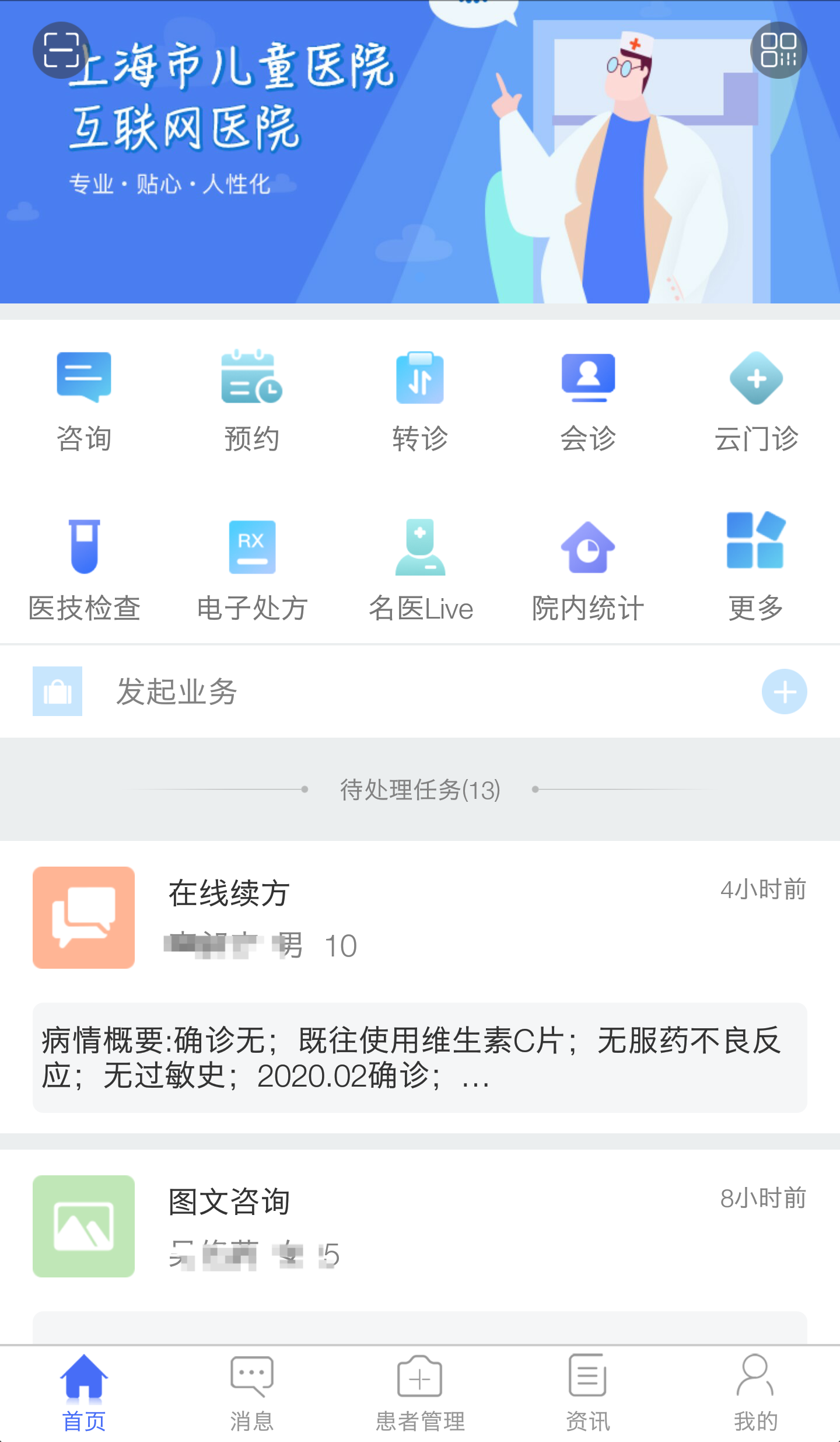 上海市儿童医院有不少患者来自长三角地区,在疫情防控期间,很多慢性病患儿无法来院复诊,使得医生和家长十分担心焦虑。虽然家长通过医院前期开设的网络咨询平台,能够与医生进行沟通互动,但仍不能解决患儿及家长的核心需求,众多家长向医生反馈家中孩子的存药一天比一天少,有的家里甚至已无药可用。然而,互联网医院只有获得卫生健康部门批准才具有线上处方资质,为此上海市卫健委加快审批互联网医院,近期颁发了首批公立医院互联网医院牌照,上海市儿童医院互联网医院名列其中。