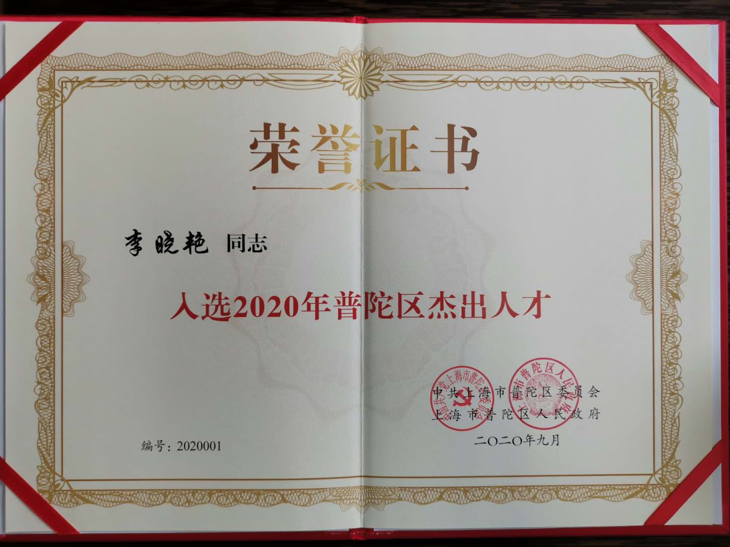 李晓艳副院长荣获普陀区“杰出人才”荣誉称号