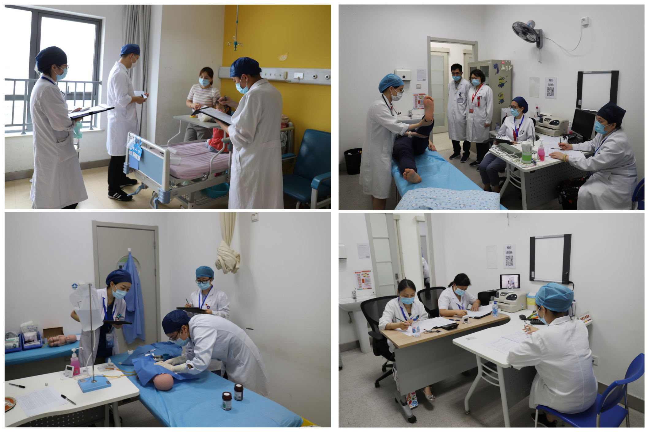 此次结业考核我院共承担了21名儿科考生和7名儿外科考生的考核工作。儿科和儿外科临床技能考核包括病史采集、体格检查、病例分析、临床操作四站,考生按照分组顺序,依次交叉进行各个站点的考核,共计47名考官承担这次执考任务。为保障考核工作有序进行,教学办公室和儿科、儿外科基地在考场布置、人员安排、疫情防控和考核物品等方面进行了充分的准备,先后开展了考务工作会议、考生动员大会、考官培训会议等一系列考前工作,并对考试流程层层细化,以确保考试顺利进行。此外,儿科考点首次将SP(标准化病人)应用到结业考核当中,为今后标准化病人在考核工作的应用积累了一定的经验。