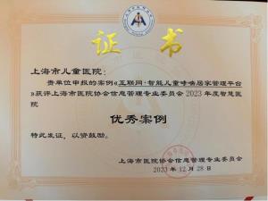 09为进一步促进医疗质量管理数字化转型发展,由上海市医院协会信息管理专业委员会、医疗质量管理专业委员会医务学组、上海交通大学医学院信息管理专业委员会主办的高质量发展背景下的医疗质量管理数字化转型研讨会于12月28日下午成功举办。我院互联网+智能儿童哮喘居家管理平台获评“2023年度智慧医院优秀案例”。