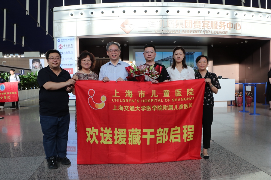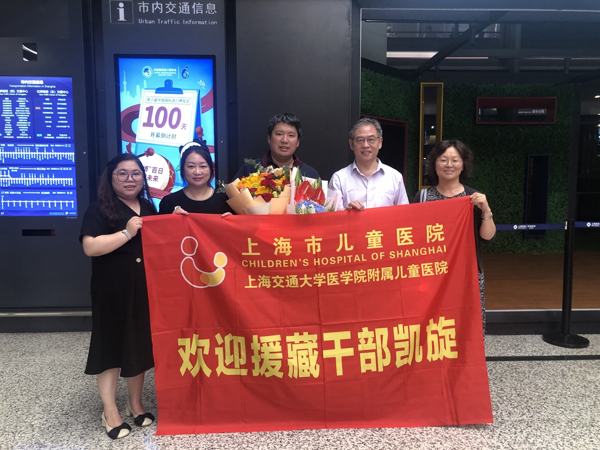 077月29日晚,我院援藏干部人才、副主任医师单怡俊同志圆满完成一年援建任务,平安返沪。院党委书记刘海峰、组织科科长乔静华、重症医学科副主任崔云、护士长徐婷婷等一行前往机场迎接。