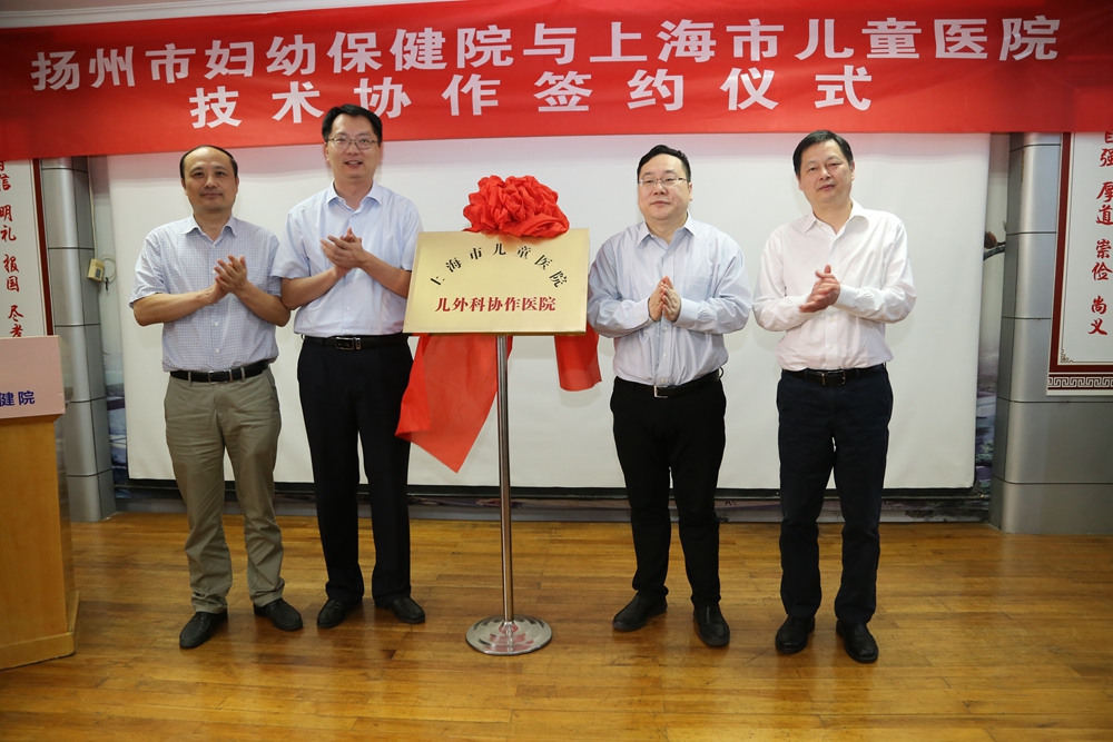 259月8日上午,我院与扬州市妇幼保健院专科合作协议签约及揭牌仪式在扬州市妇幼保健院举行。扬州市卫生健康委副主任王劲松,扬州市妇幼保健院院长许建国,我院院长于广军、副院长吕志宝及心胸外科、骨科、泌尿外科专家参加会议。仪式由扬州市妇幼保健院副院长王亦雄主持。