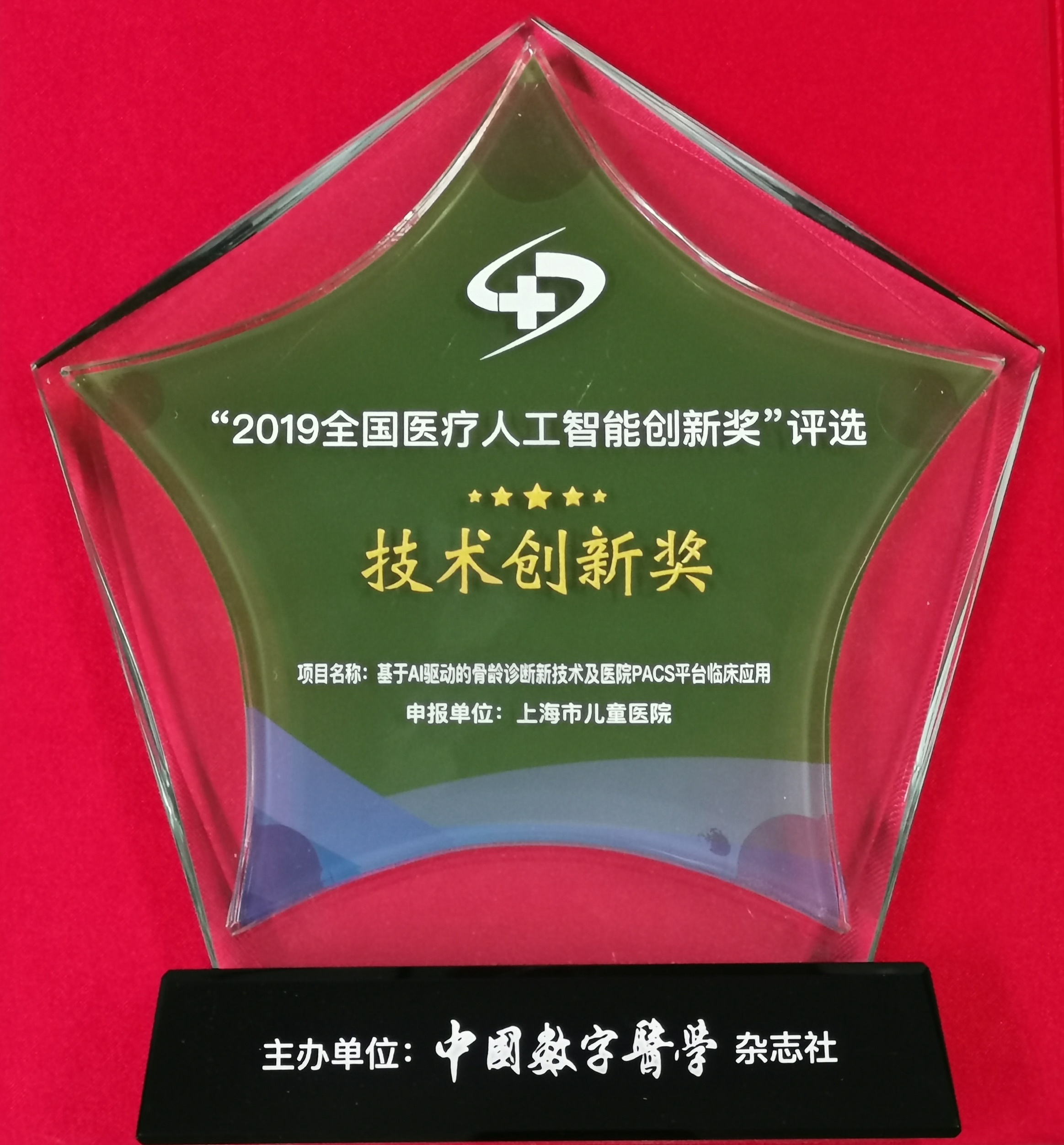 06由国家卫生健康委医院管理研究所指导、《中国数字医学》杂志社主办、各省卫生信息学会与多家医疗机构、管理学院等联合协办的“2019中国数字医学高峰论坛——人工智能与未来医学”大会在北京成功举办。我院影像科联合信息科、内分泌科开展的“基于AI驱动的骨龄诊断新技术”荣获2019全国医疗人工智能创新奖(技术创新奖)。