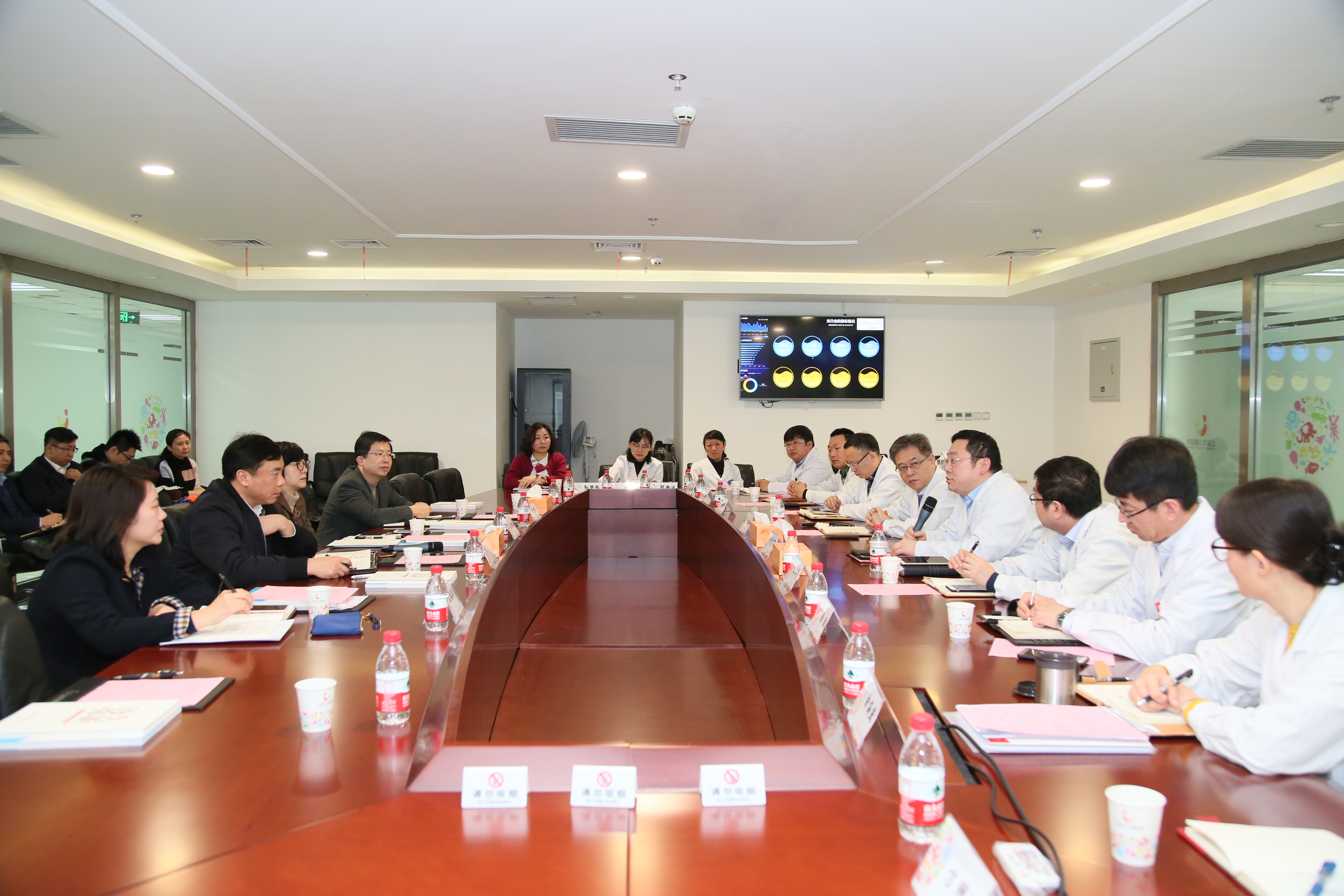 023月22日上午,普陀区副区长张伟、区卫生计生党工委书记马理路、副主任鲁威、长风生态商务区党委副书记王娟娟一行来到我院进行大调研,我院院长于广军、副院长刘海峰、高春辉、杨晓东、总会计师张胜携各相关职能科室负责人及一线员工参加了调研。