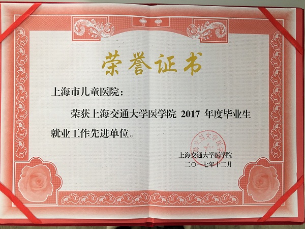 05日前,在上海交通大学医学院召开的2017年度学生工作总结会上,我院荣获“上海交通大学医学院2017年度毕业生就业工作先进单位”称号。